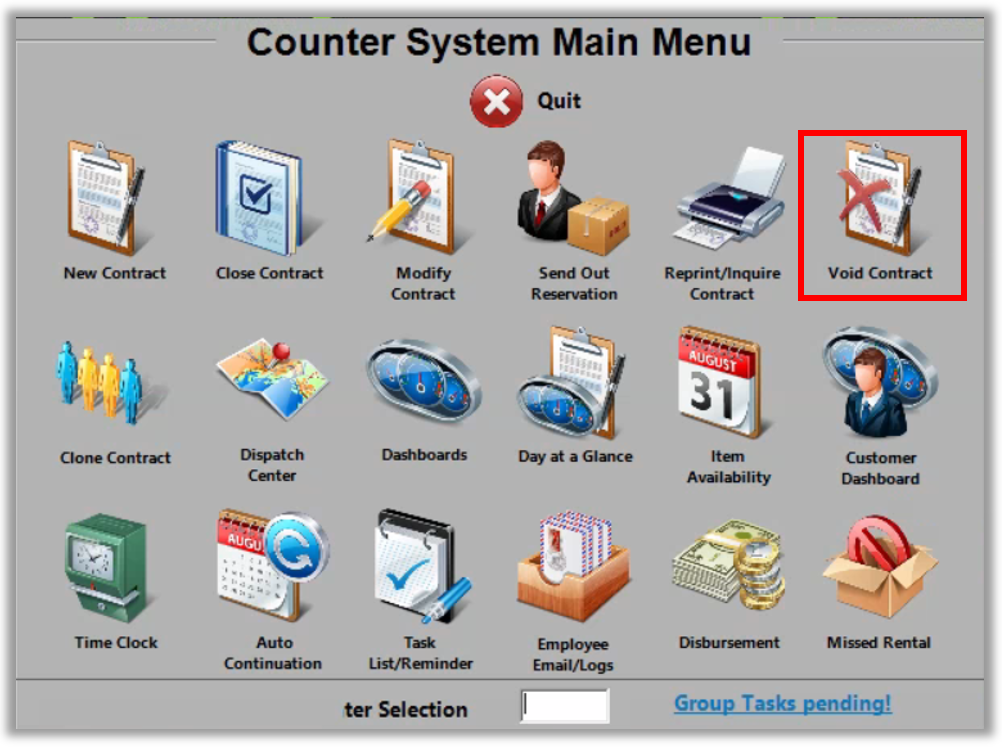 You can also do so through the Counter System Menu, where you can choose Void Contract.