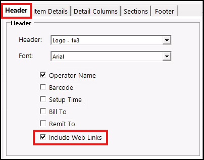 Select the ‘Header’ tab and check the box ‘Include Web Links.’