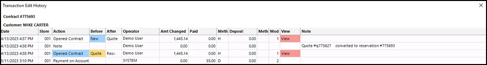 Transaction/Payment History